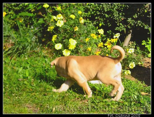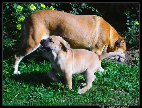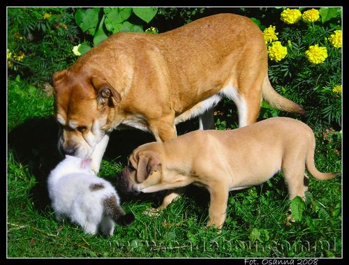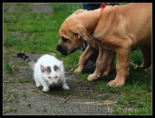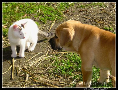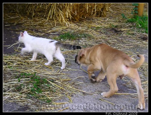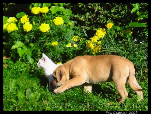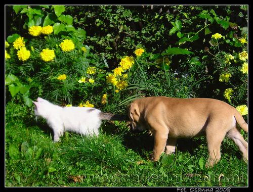 27 09 2008, Na pierwszym spacerze z prababcią Eriesse del Espana Osanna. Robin poznaje kotka Bladego.