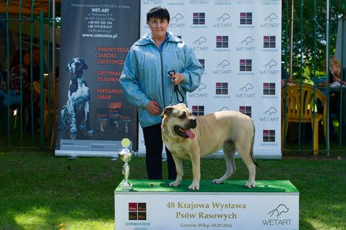 I doskonały / I excellent, CWC / CAC, Najlepszy Dorosły Pies / Best Adult Male, Zwycięzca Rasy / Best of Breed [BOB]