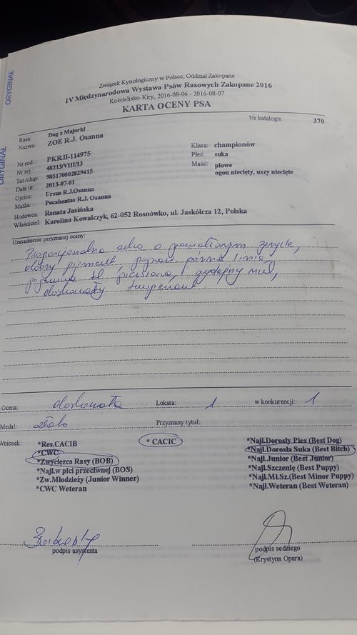 Serdecznie gratuluję i dziękuję za wystawianie psa!!!