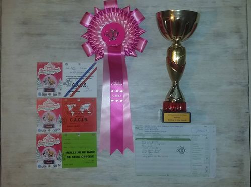 I doskonała / I excellent, CWC / CAC, Najlepsza Suka / Best Female, Zwycięzca Rasy / Best of Breed [BOB]