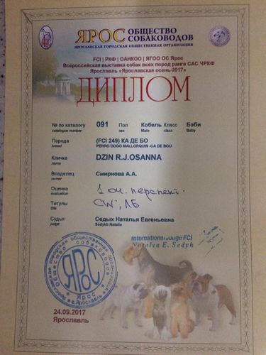 DAHLIA R.J.Osanna [ rodzice / parents: Beautiful Girl R.J.Osanna & Fedir Cazador del Torros]