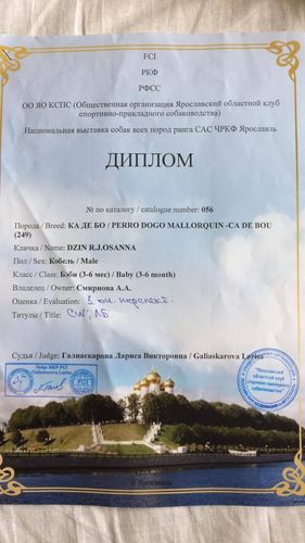 I doskonały / I excellent , CWC / CAC, CACIB, BOS.