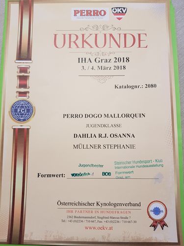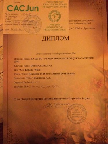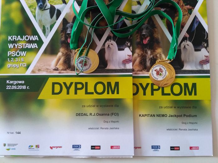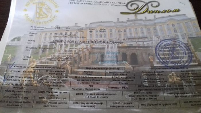I doskonały / I excellent, Zwycięzca Młodzieży / JCAC, Najlepszy Junior / Best junior, Zwycięzca Rasy / Best of Breed [ BOB ].