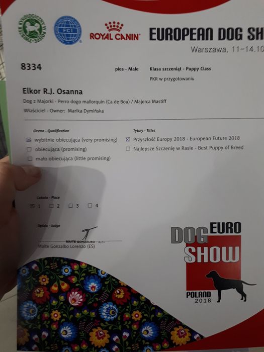 Serdecznie gratuluję i dziękuję za wystawianie psa.