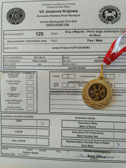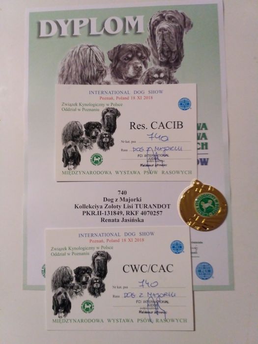 I doskonała / I excellent, CWC / CAC, CACIB, Zwycięzca Rasy / Best of Breed [ BOB ]