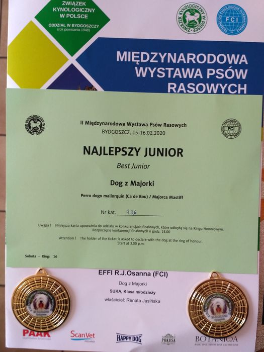 I doskonała / I excellent, Zwycięzca Młodzieży / JCAC, Najlepszy Junior / Best Junior, Zwycięzca Płci Przeciwnej / BOS