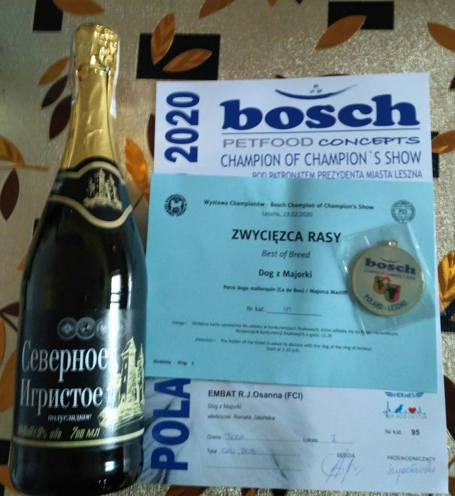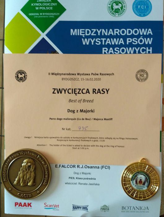 I doskonała / I excellent, CWC / CAC, CACIB, Najlepszy Dorosły Pies / Best Adult Male, Zwycięzca Rasy / Best of Breed [ BOB ]